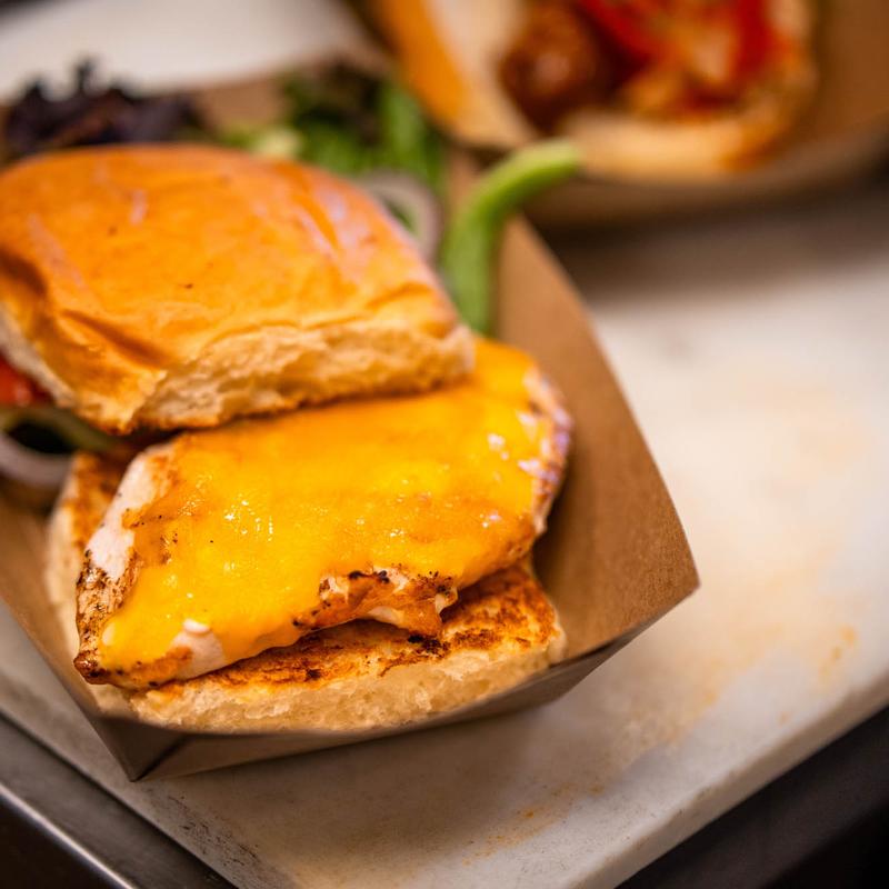 Rotisserie Chicken with Basil Pesto & Gruyere on Baguette